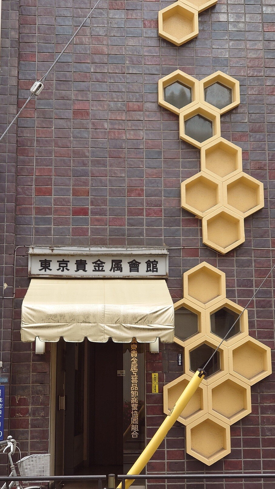 東京貴金属会館 東京都台東区蔵前4丁目20−8イベント参加のため東京貴金属会館(1966~)へ。ハニカム形状の意匠がたまりません。タイルもワインのようなブドウジュースのような色あい。ドアハンドルが美しき。 ...