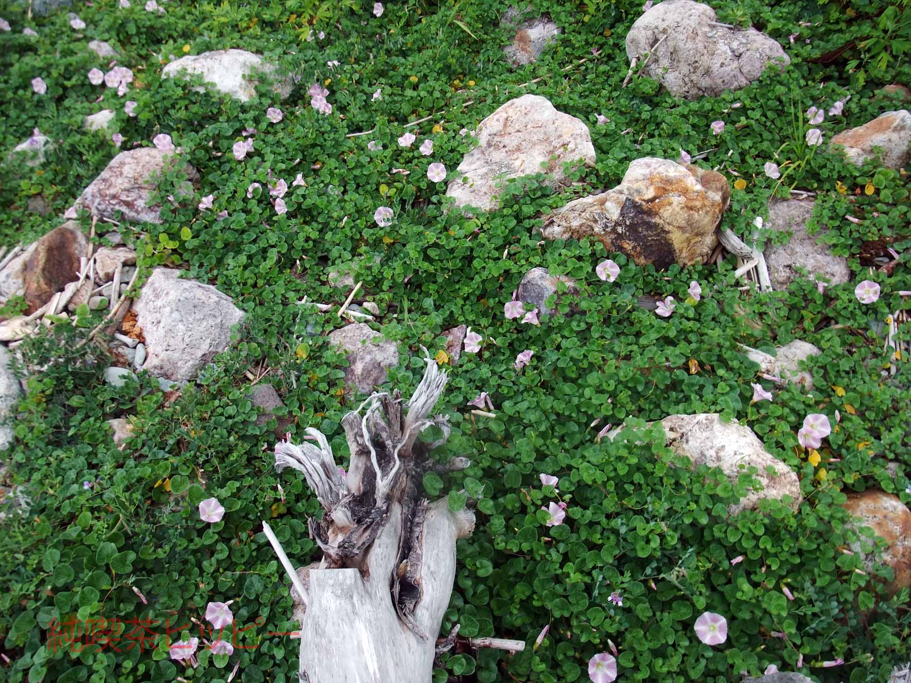 昼顔?と岩石のコンビネーションはとても美しいです。