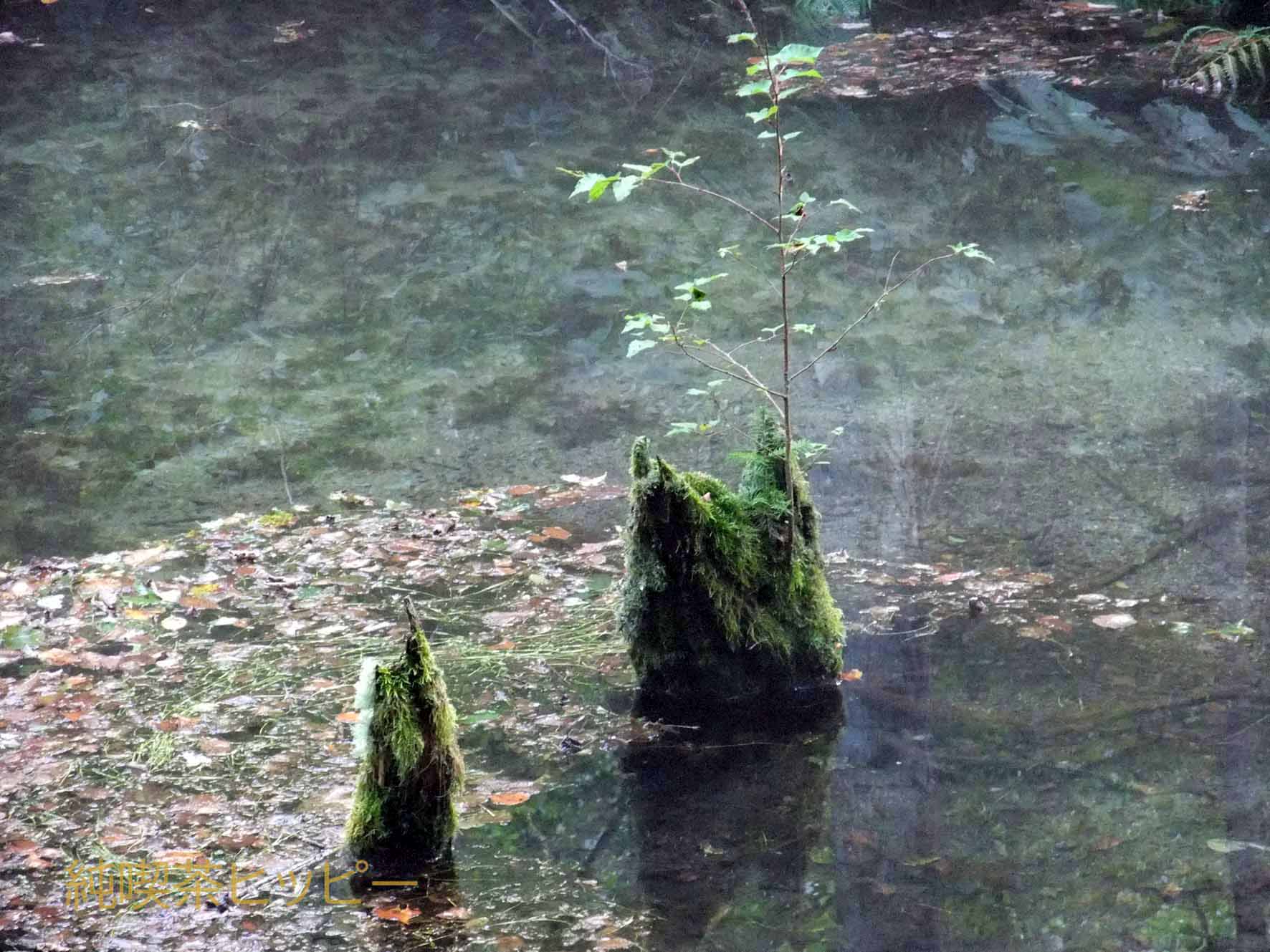 とても小さな池だけど、カムイトー(摩周湖)の伏流水が湧き続けている場所で、水の美しさったら半端ない。水が通年冷たいので倒木が腐らず残っています。