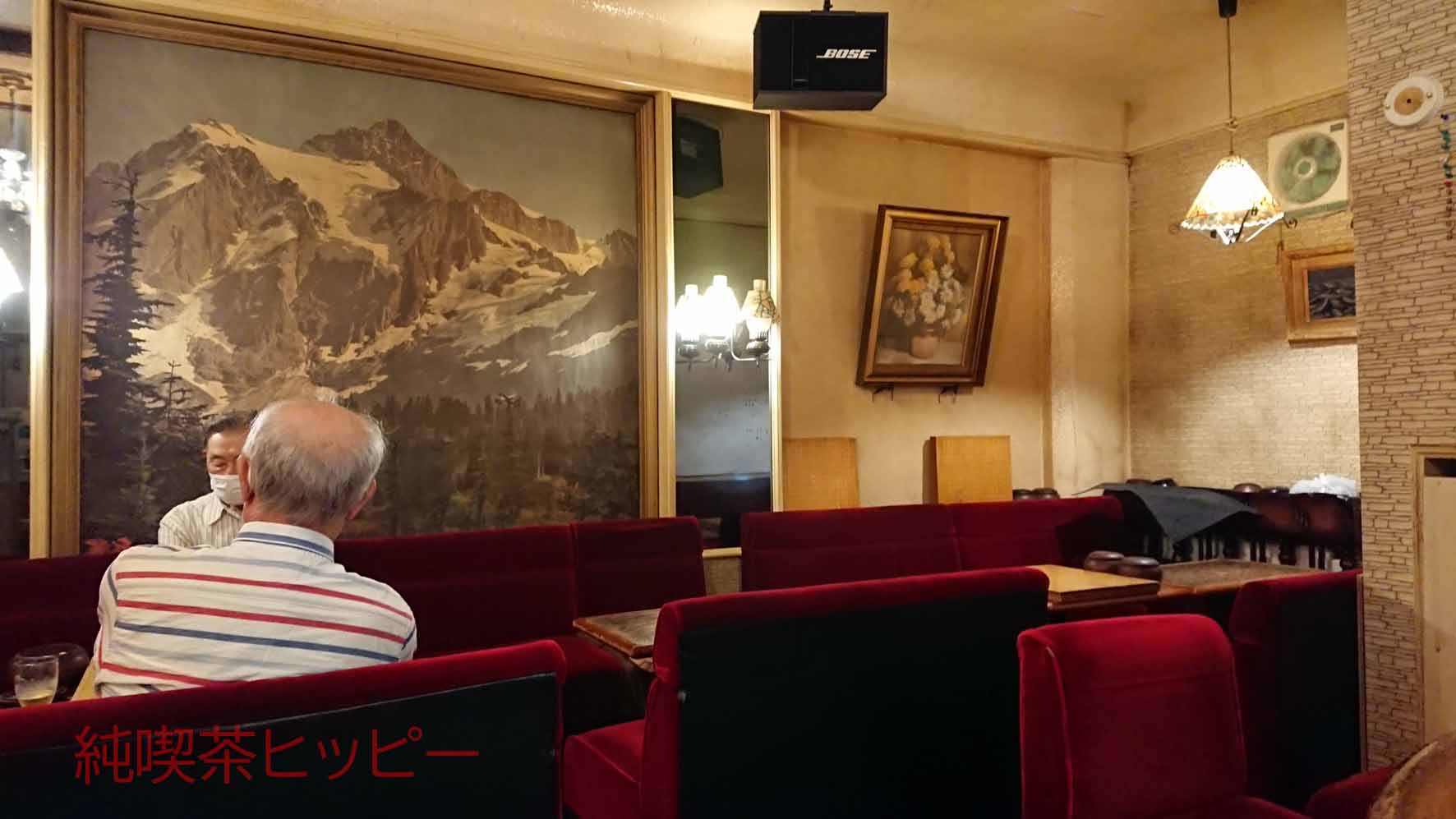 カウンターの上部はわざわざのクッション張り。とても「昭和豪華」な室内。