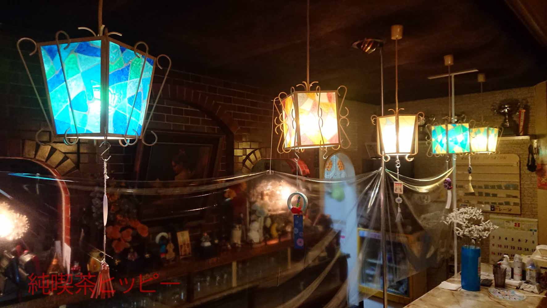 コロナ対策のビニールが張ってあるが、照明器具ともに雰囲気最高。