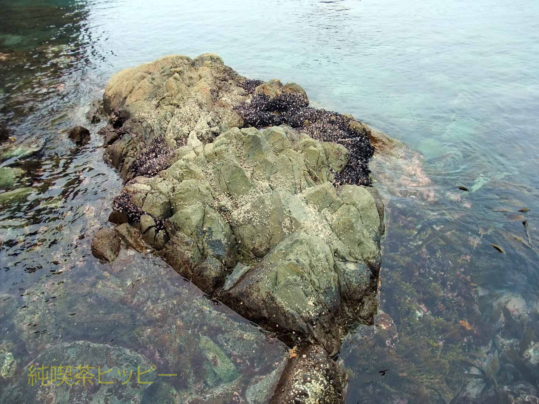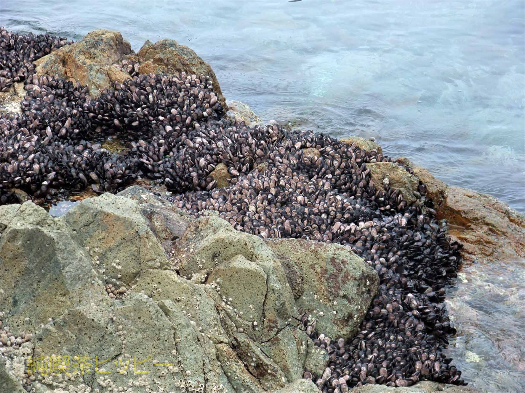 岩に「イガイ(カラス貝)」がびっしり。これ、食えなくもないようですよ。