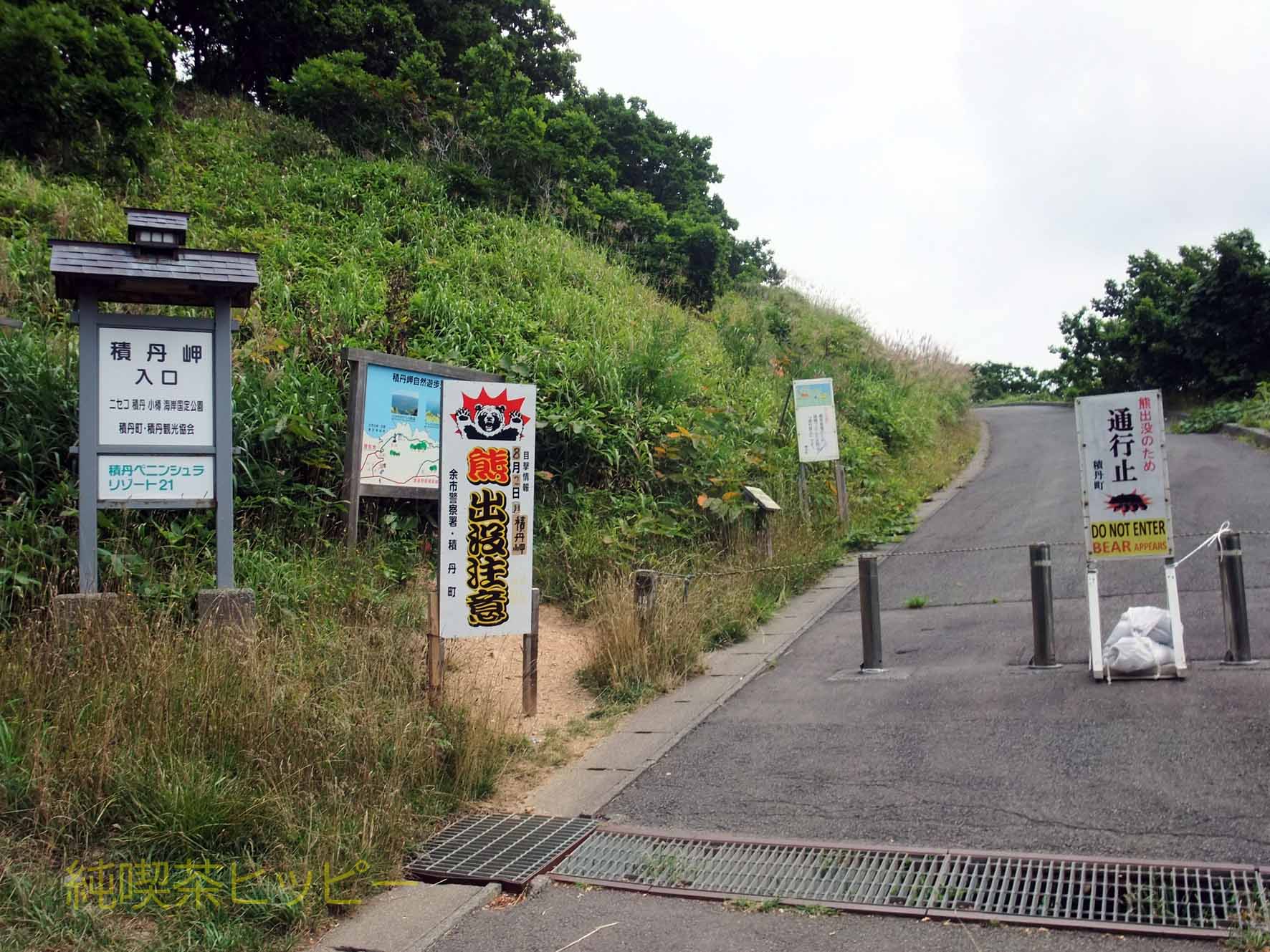 右の道路は積丹出岬灯台や女郎子岩 展望台・ピリカ岬への往復4km程度の