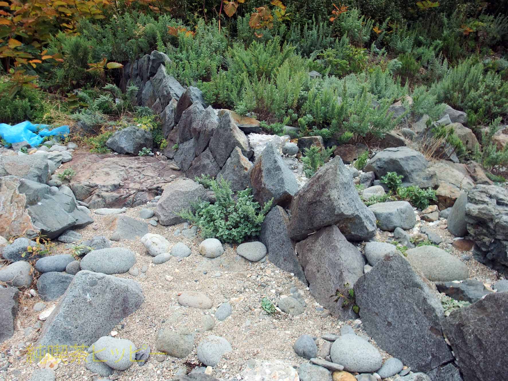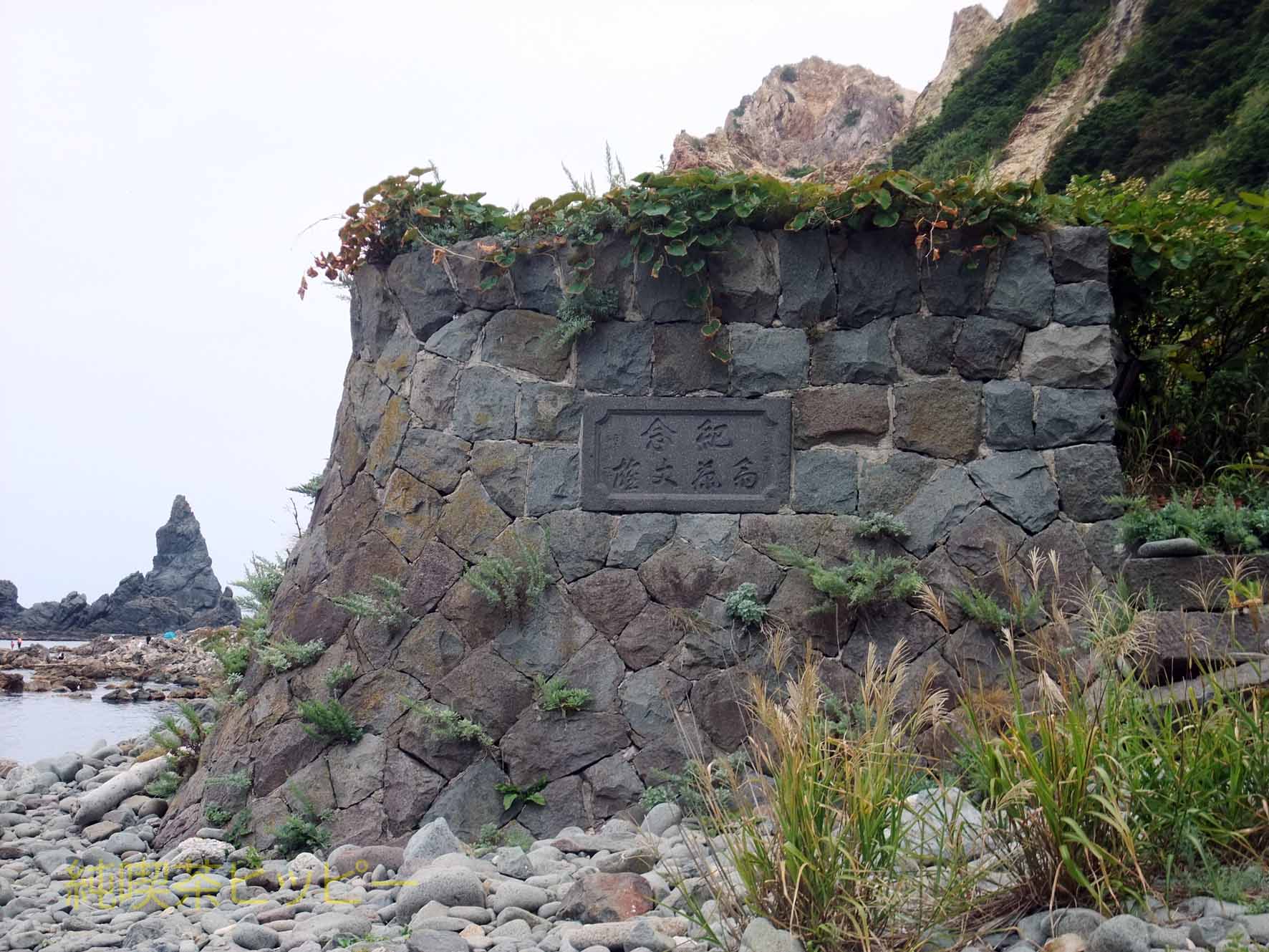 この目立つ記念碑・石垣はニシン番屋の主である斉藤家のもの。