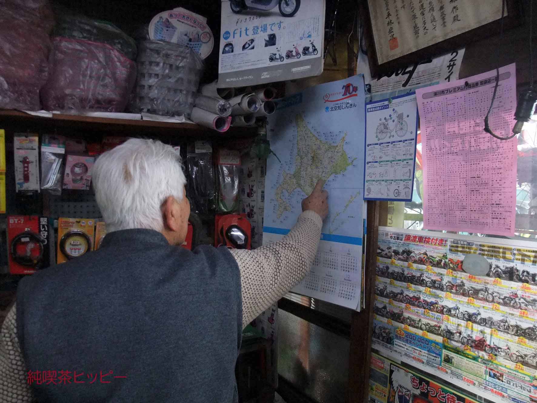 店主によると、北海道郵政から郵便配達の赤いバイク(カブ)の販売と保守をまかされていたのだそう。