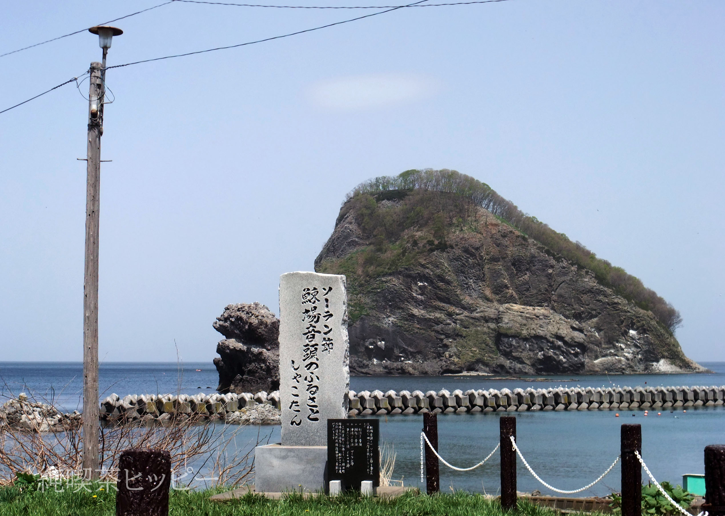 今では珍しくなったこの木の電柱の横には「ソーラン節 鰊場音頭のふるさと」碑があります。