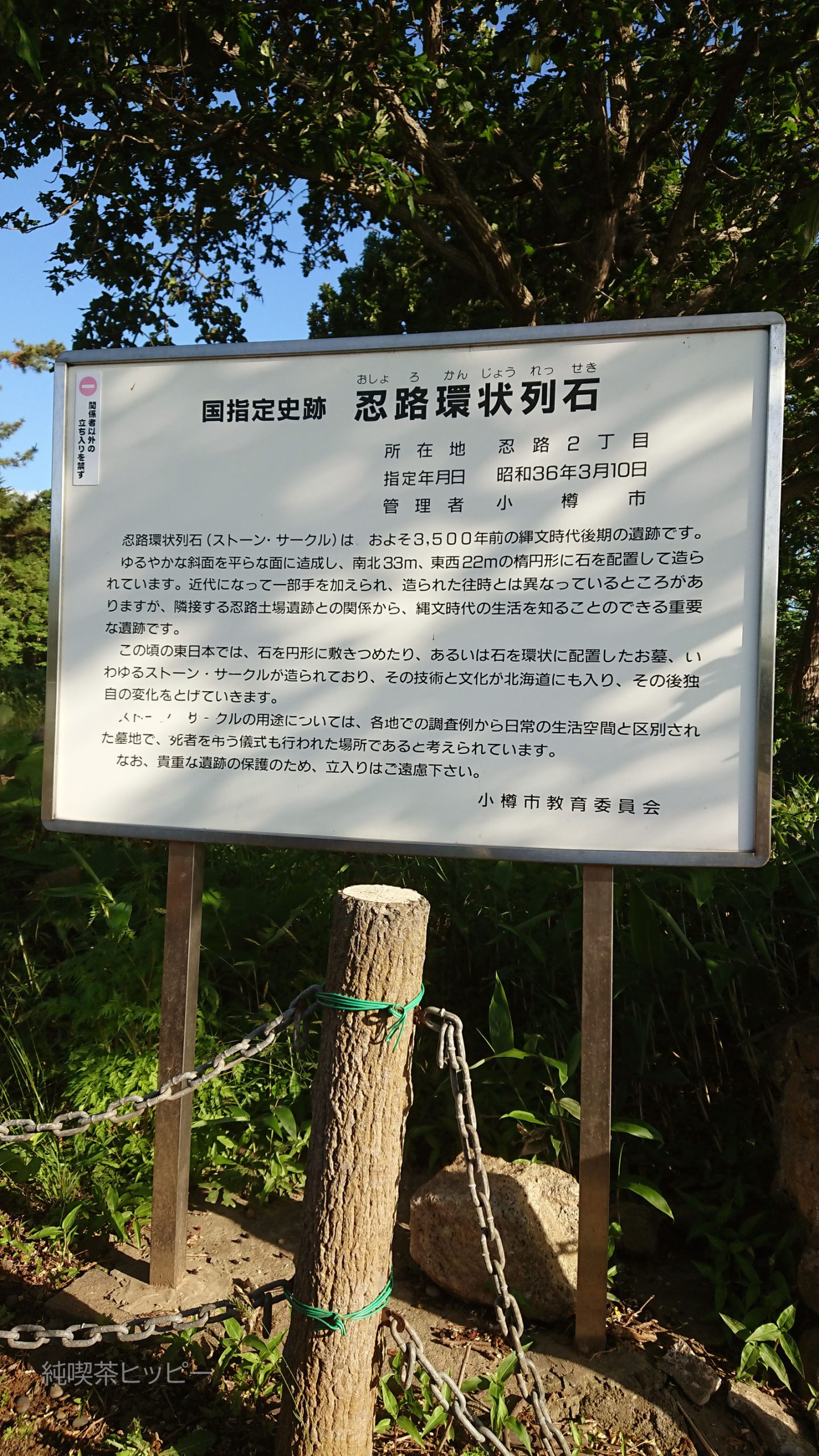 忍路環状列石(ストーンサークル)は、 1961年に国の史跡に指定されており、