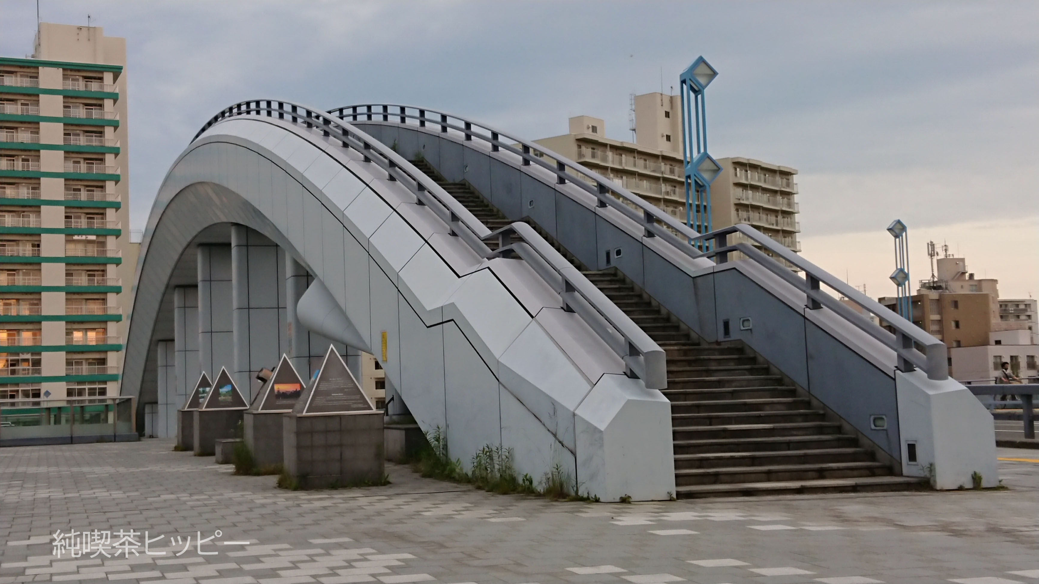 写真でもわかるとおり、なんといっても「アーチ橋」であることが特徴で、このアーチの上は広い歩道らなっていて歩けちゃうという嬉しい設計。