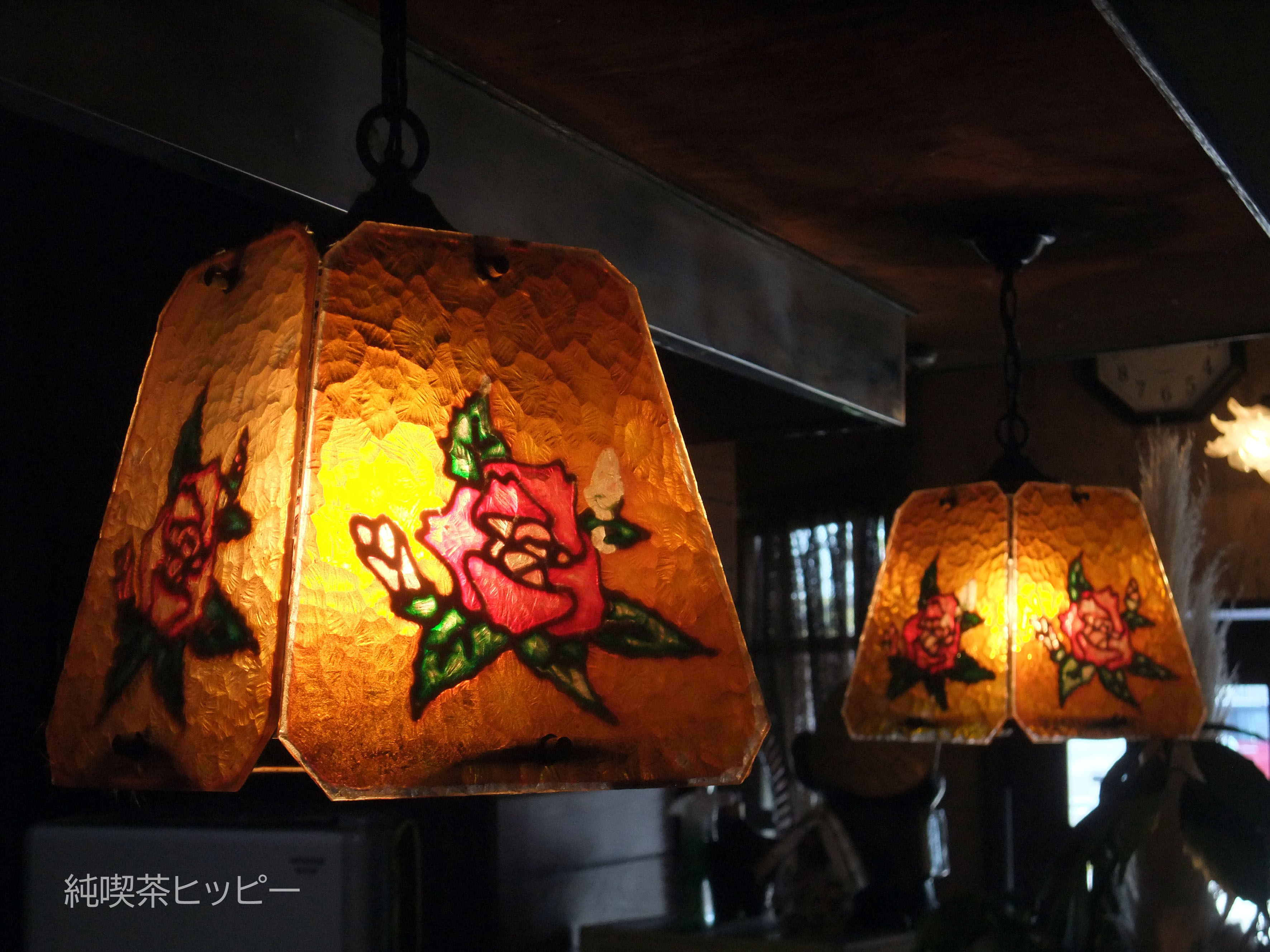 照明器具の傘も花模様。