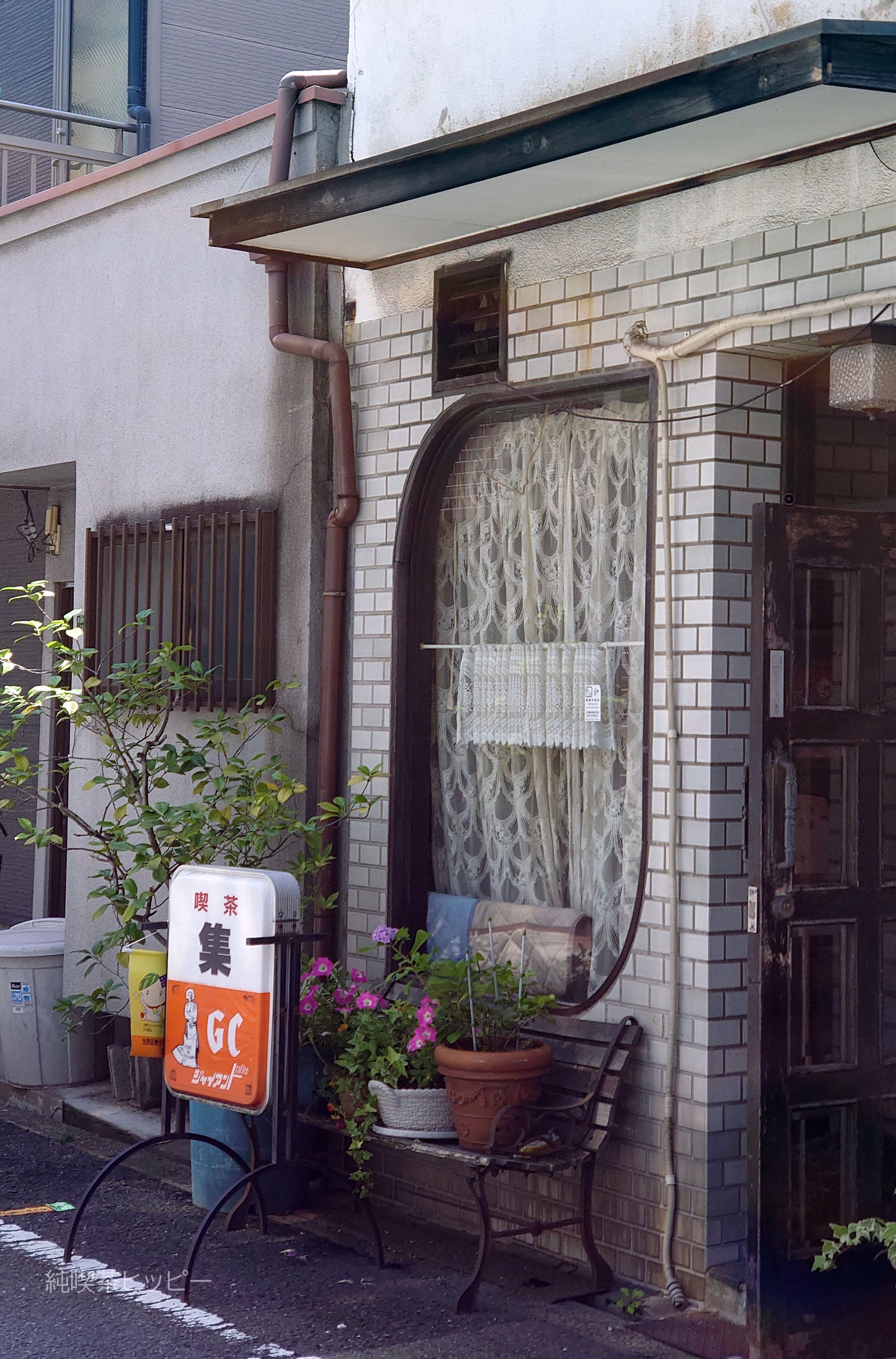 看板の脚のアーチと窓の形が可愛いですね。