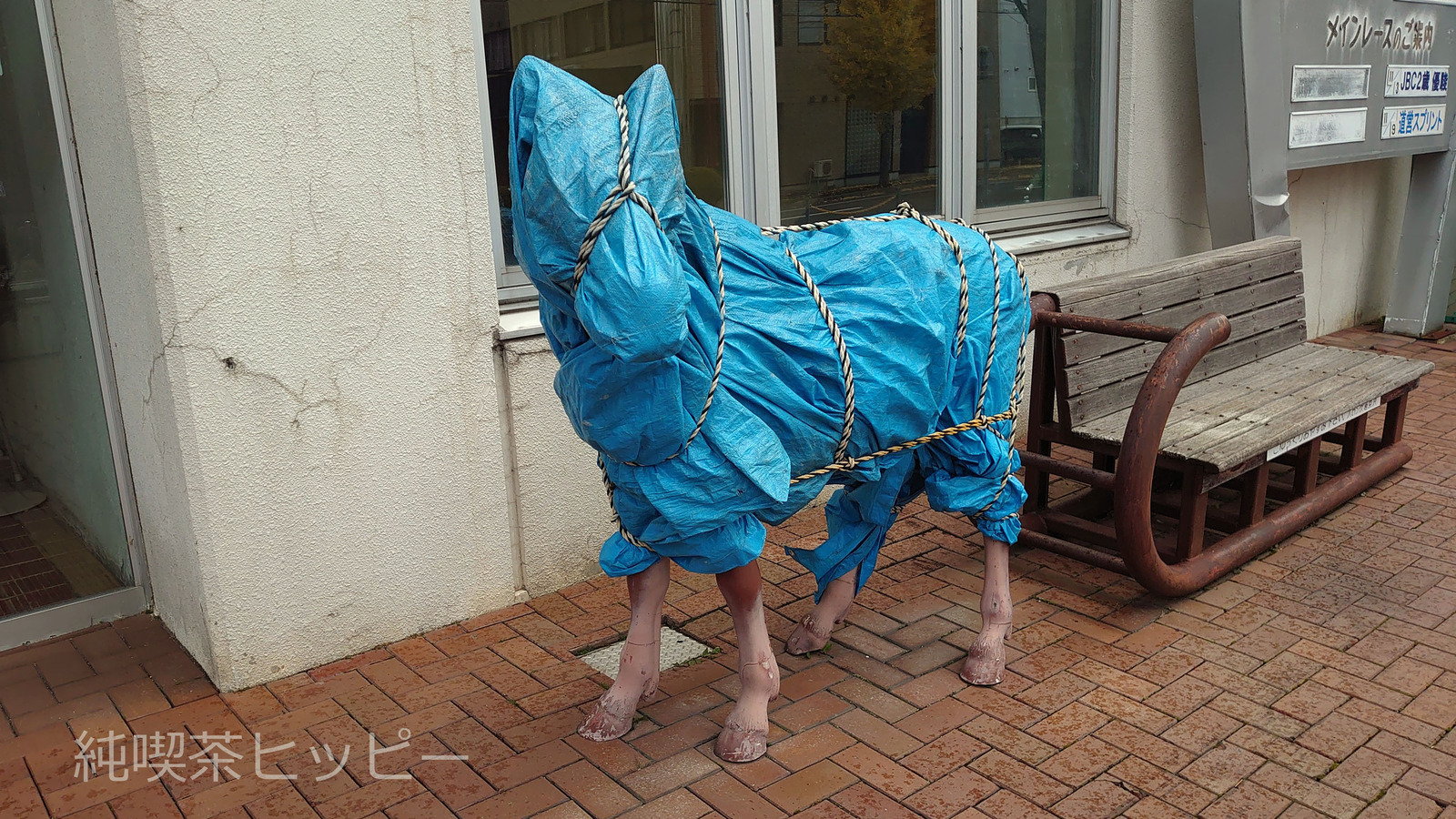 ハロンズ岩見沢 ◆建造物【岩見沢・美唄・夕張市】 X Facebook LINE Pinterest コピー 2023.11.21 ハロンズ岩見沢 北海道岩見沢市6条西2丁目1−3 場外馬券売り場ができたのは、たしか昭和63年か平成元年くらいと記憶している。そのころぼくは岩見沢市で暮らしており、この近所に住んでいたが、競馬をやらないので不思議な施設だと思っていた。 1階がばんえい競馬、2階が、ホッカイドウ競馬(地方・JRA)のチケット売り場で、館内では競馬の中継が放送されている。現在は一階のみ使われているようだ。 館内は暗く、人はまばらだった。玄関前の冬囲いの馬。