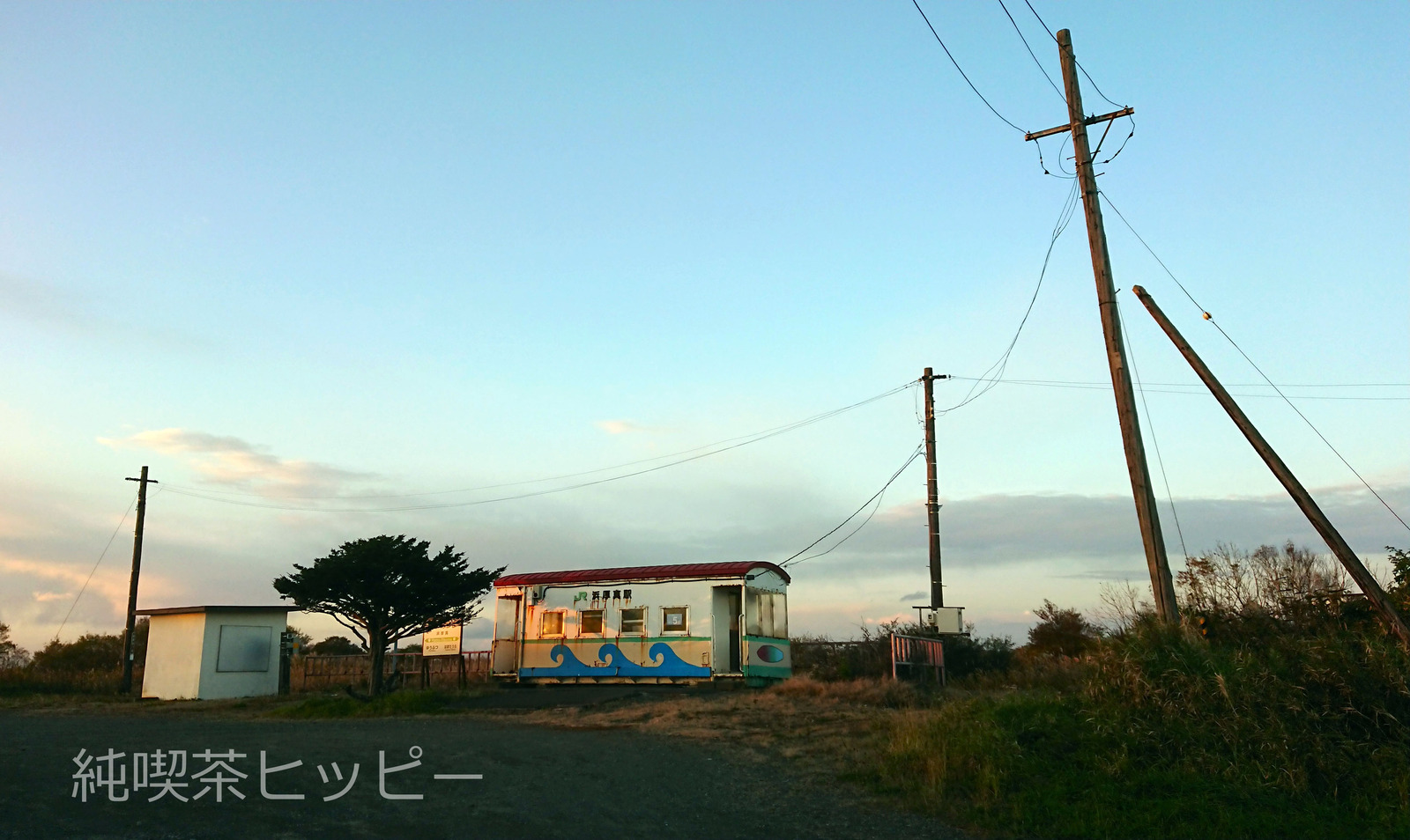 浜厚真駅 ◆駅舎 X Facebook LINE Pinterest コピー 2023.12.10 浜厚真駅 北海道に多数ある車掌車を待合室として再利用した駅。 無人駅になる前は普通の建物でした。 ほぼ海辺にあり、無人駅になってからは、波模様のペイントがされました。 夕焼けに立ち寄ったので、照らされて美しい…。 気が付くとまわりに鹿の群れが。
