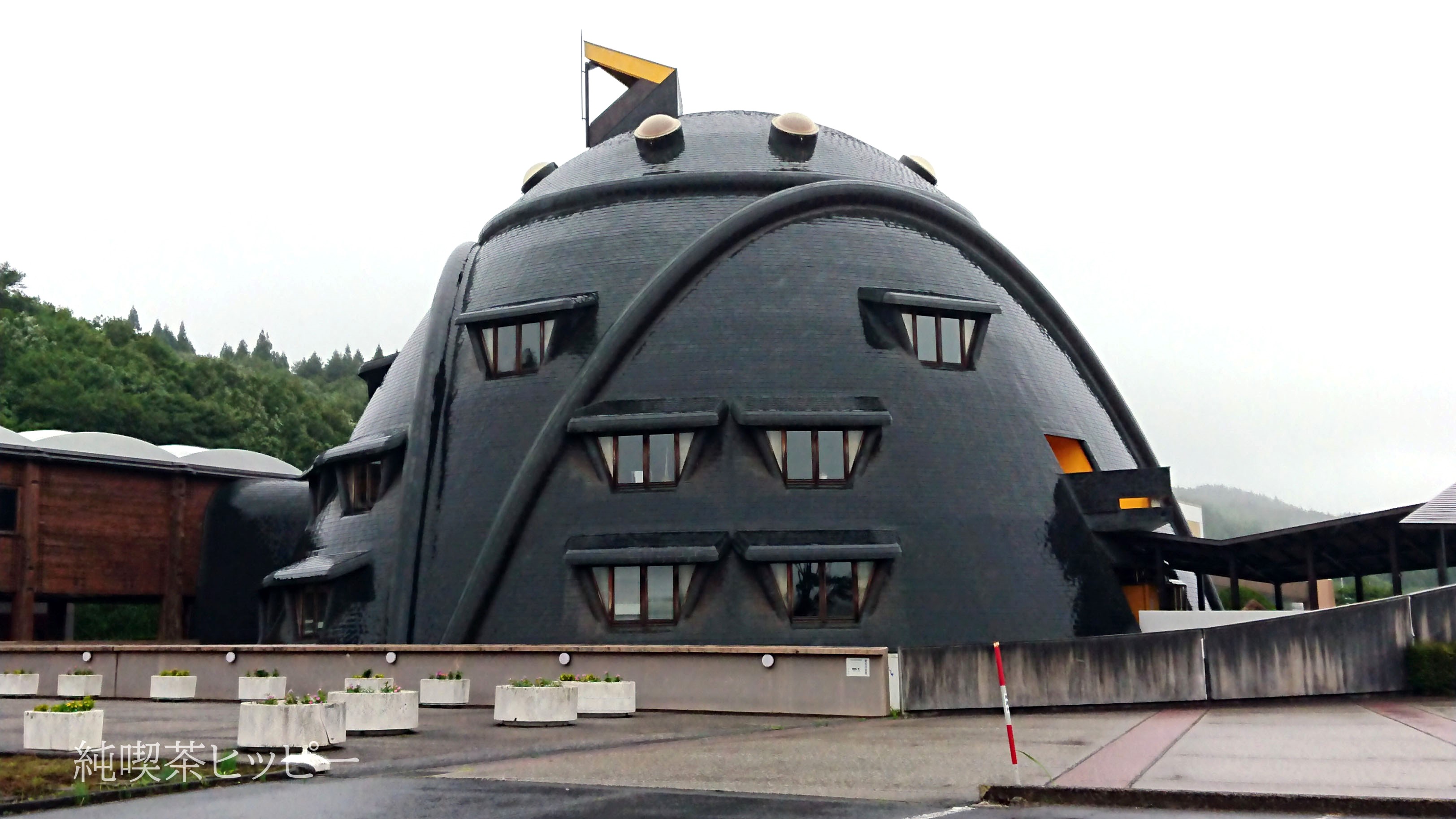 運転中に見えてきた黒いダースベイダーの仮面のような建造物。