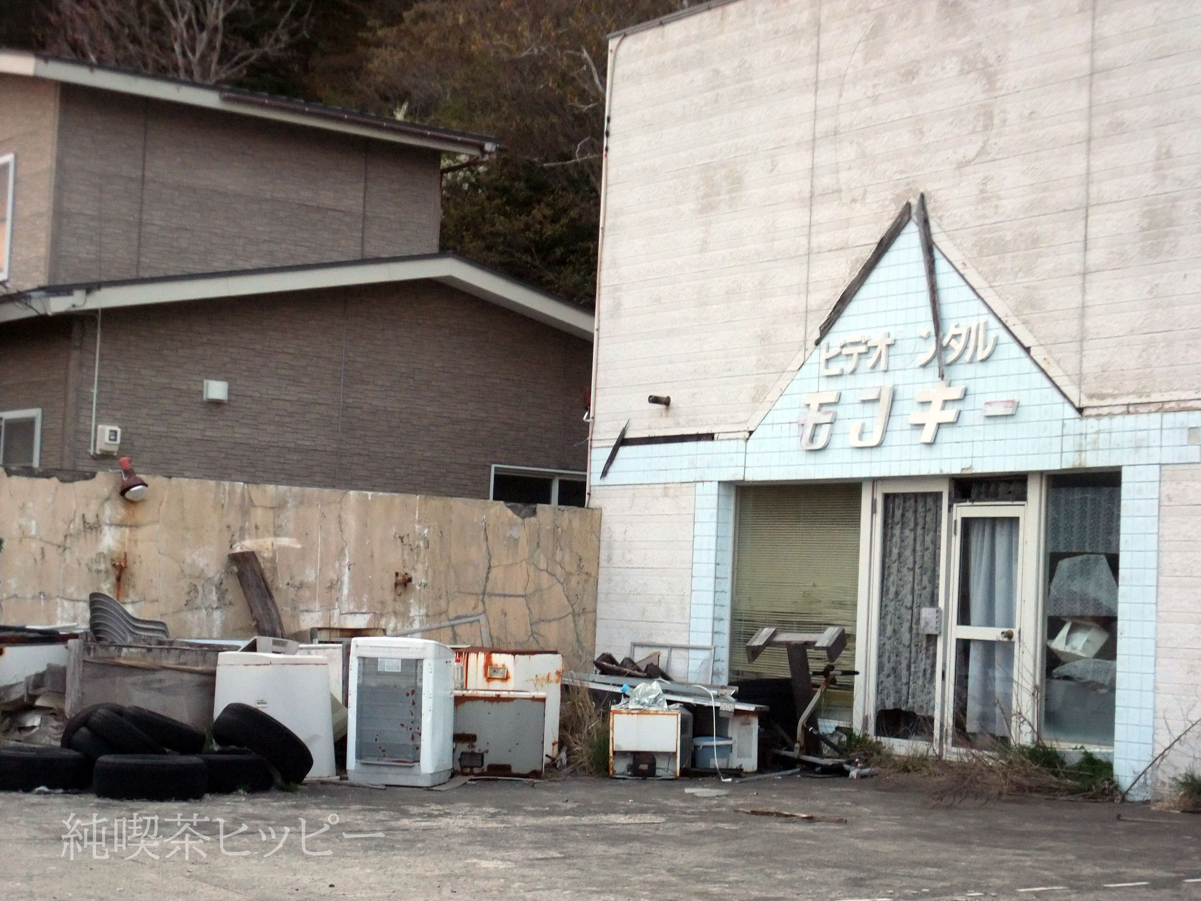レンタルビデオ店とスナックの廃墟がありました