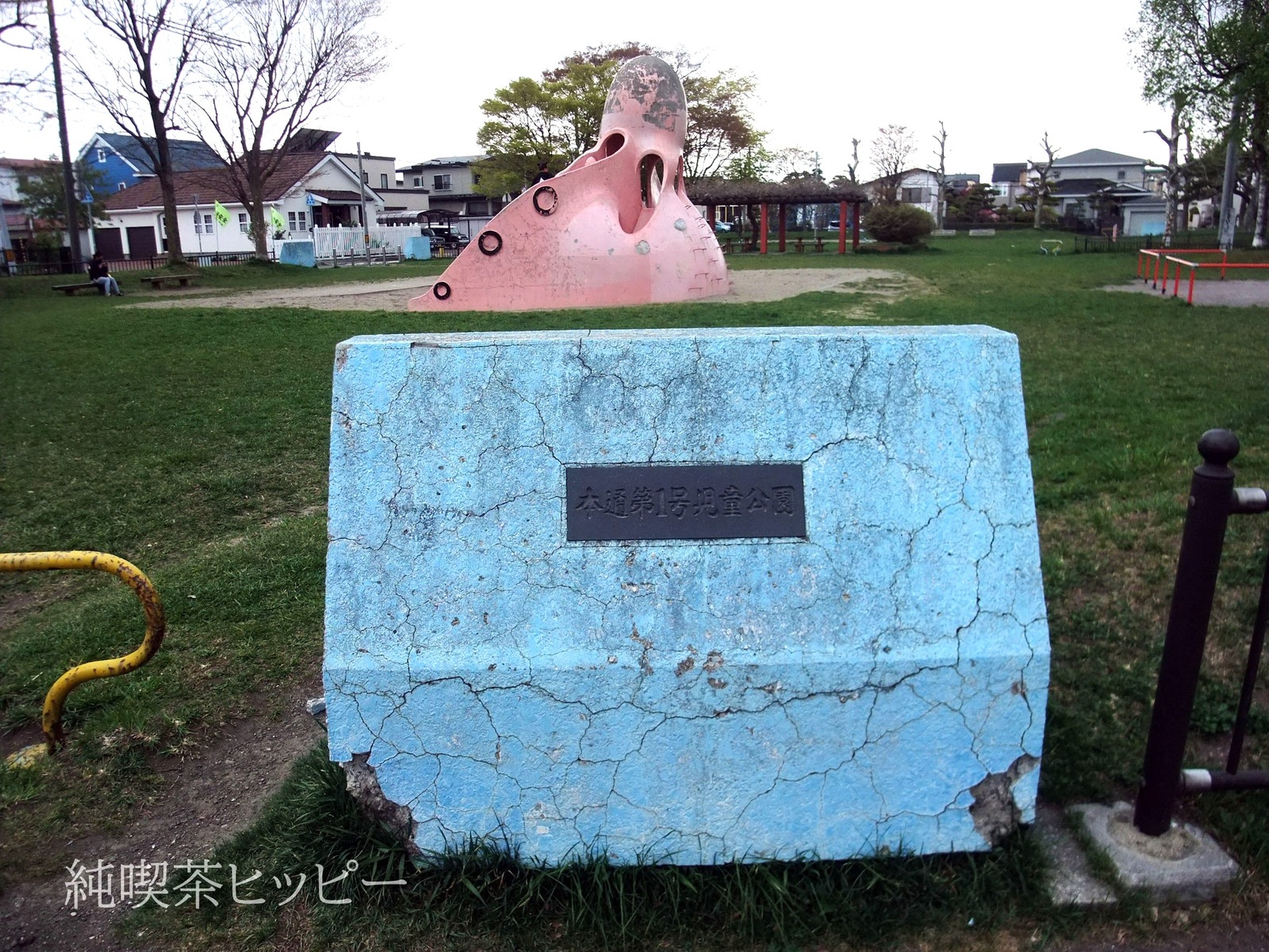 本通第1号児童公園 タコ滑り台 ◆公園遊具 X Facebook LINE Pinterest コピー 2024.06.12 タコ滑り台本通第1号児童公園 北海道函館市本通2丁目43 うちのブログの「公園遊具」カテゴリーにも相当な数の滑り台が蓄積されておりますけれども、今回の「タコ滑り台」は函館市。有名な函館五稜郭から徒歩15分くらいの住宅地にあります。 午前9:30、子供たちが遊びにきました。じゃましちゃ悪いので撤退です。 町内会作成の手書き交通安全看板。味がある…