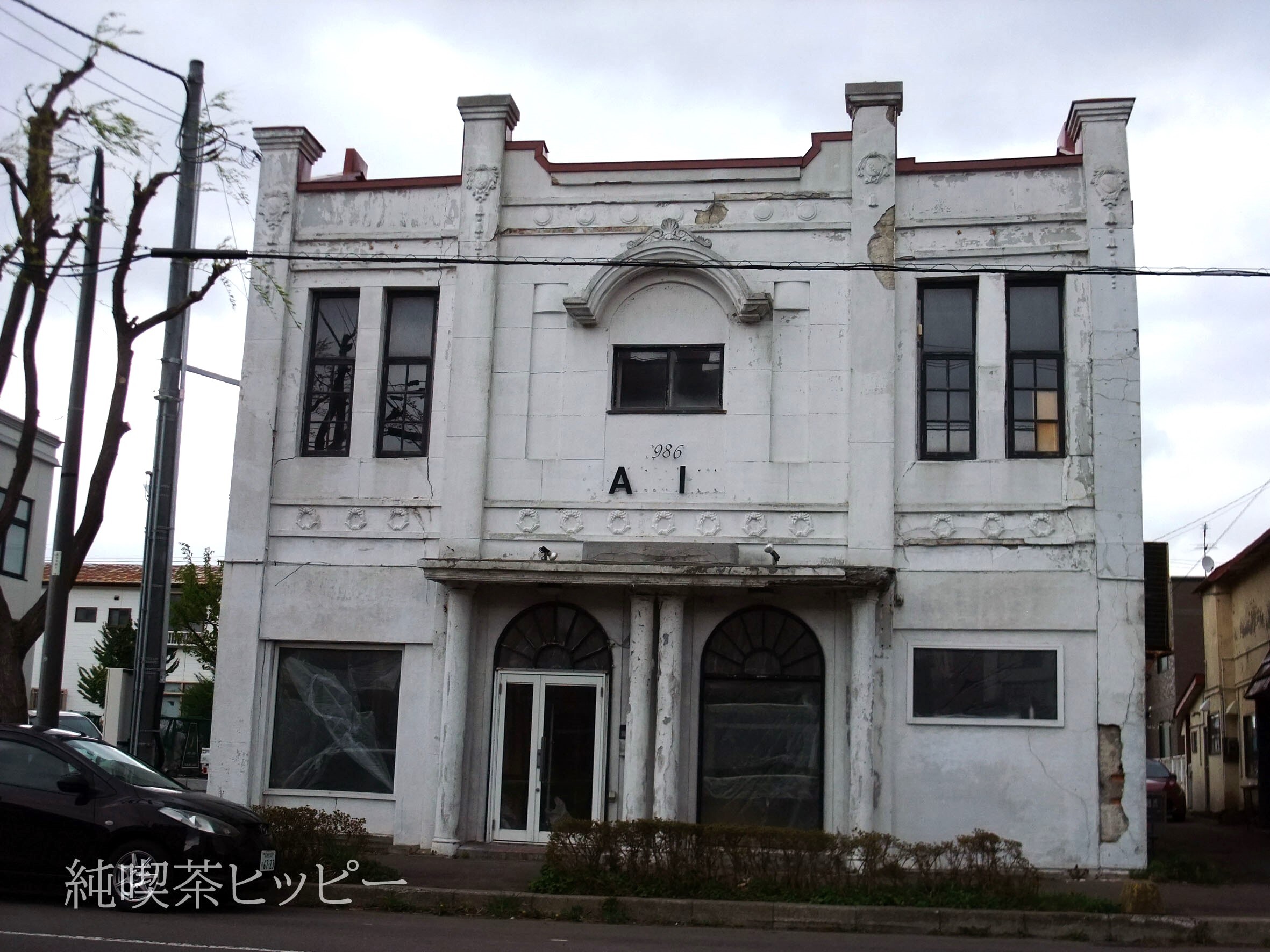 以前のテナントの看板だろうか、1986らしき文字と〇A〇I〇が残っている。