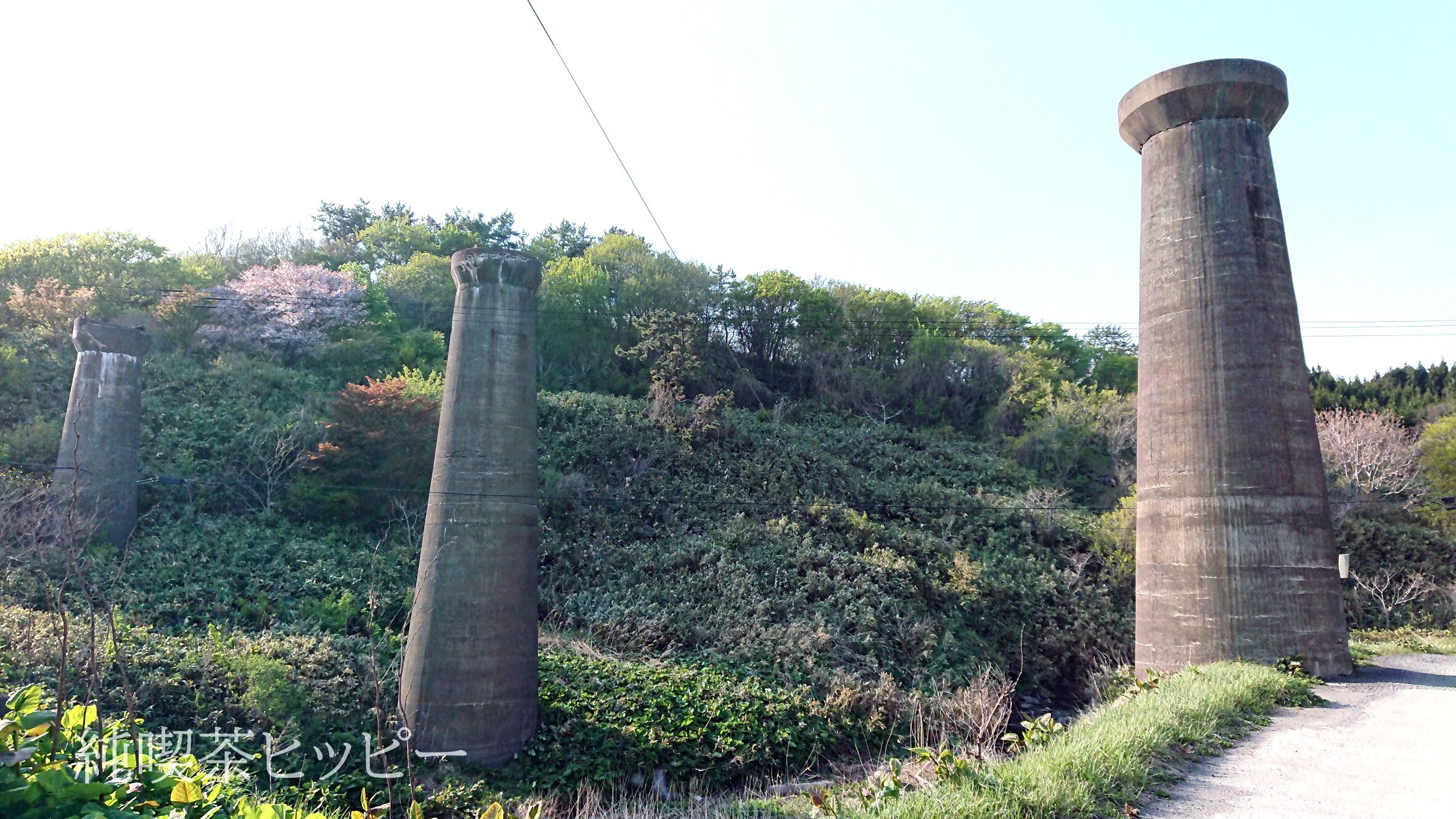 団地の給水塔のような3本の円柱状の巨大橋脚が圧巻です。