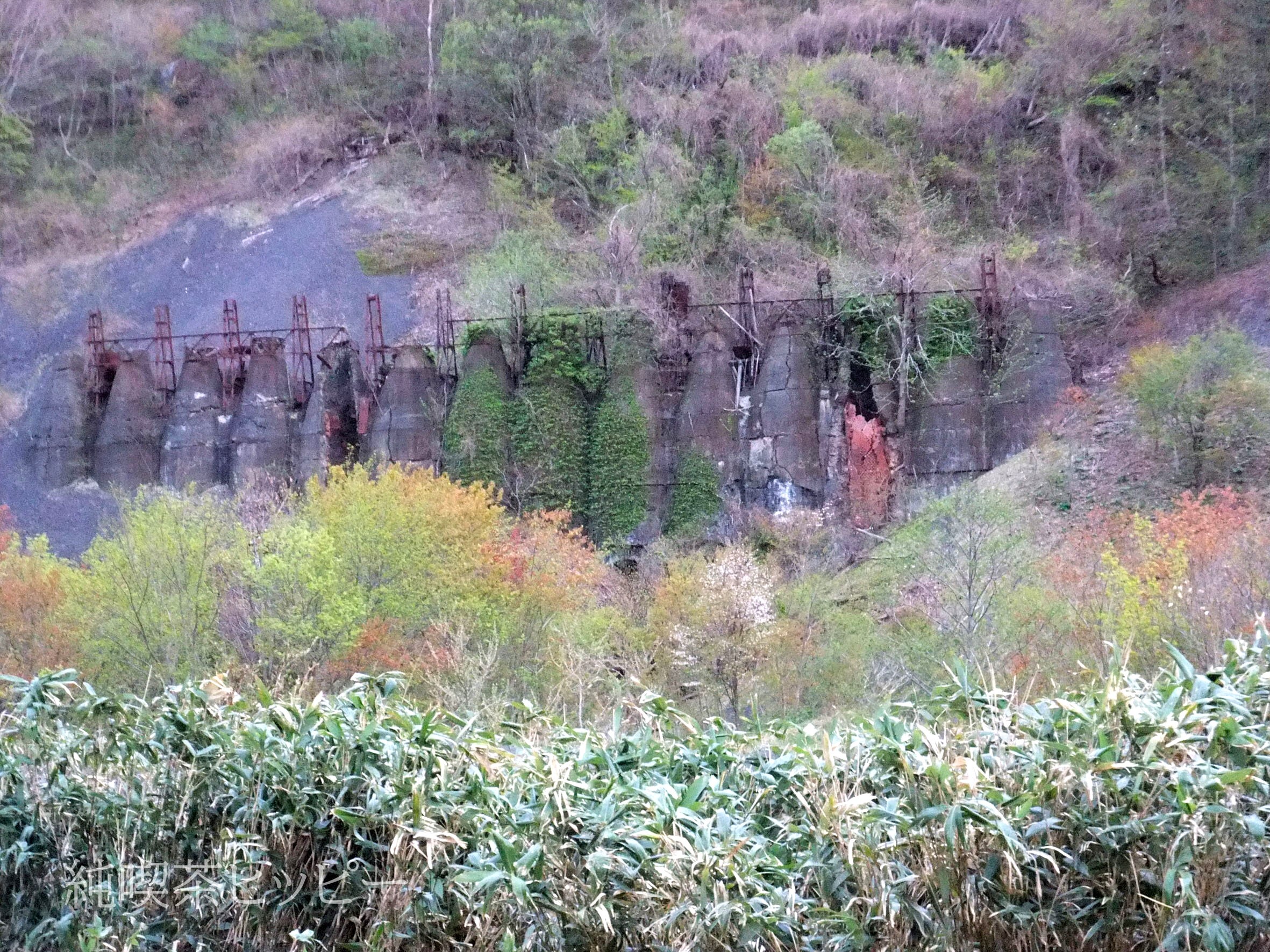 上国鉱山焙焼炉跡 中外鉱業㈱ 2024年07月06日 上国鉱山焙焼炉跡 中外鉱業㈱ 北海道上ノ国町かつて存在した中外鉱業上国鉱業所(中外鉱山)を眺めたくてちょっと山奥に行ってみた。場所は上ノ国町の中心部から5~6南東に進んだ地点。こんなところには誰も来ないのでとても静かだ。この鉱山は昭和14年に八田満次朗氏が創業したもので、のちに中外鉱山となる(操業は昭和61年で終了)。まるでロケットのような形状に見える焙焼炉で採取したマンガン鉱石を焼いて精製していた。黒いものはマンガン鉱のズリ山 「◆建造物【函館市】」カテゴリの最新記事 < 前の記事次の記事 >