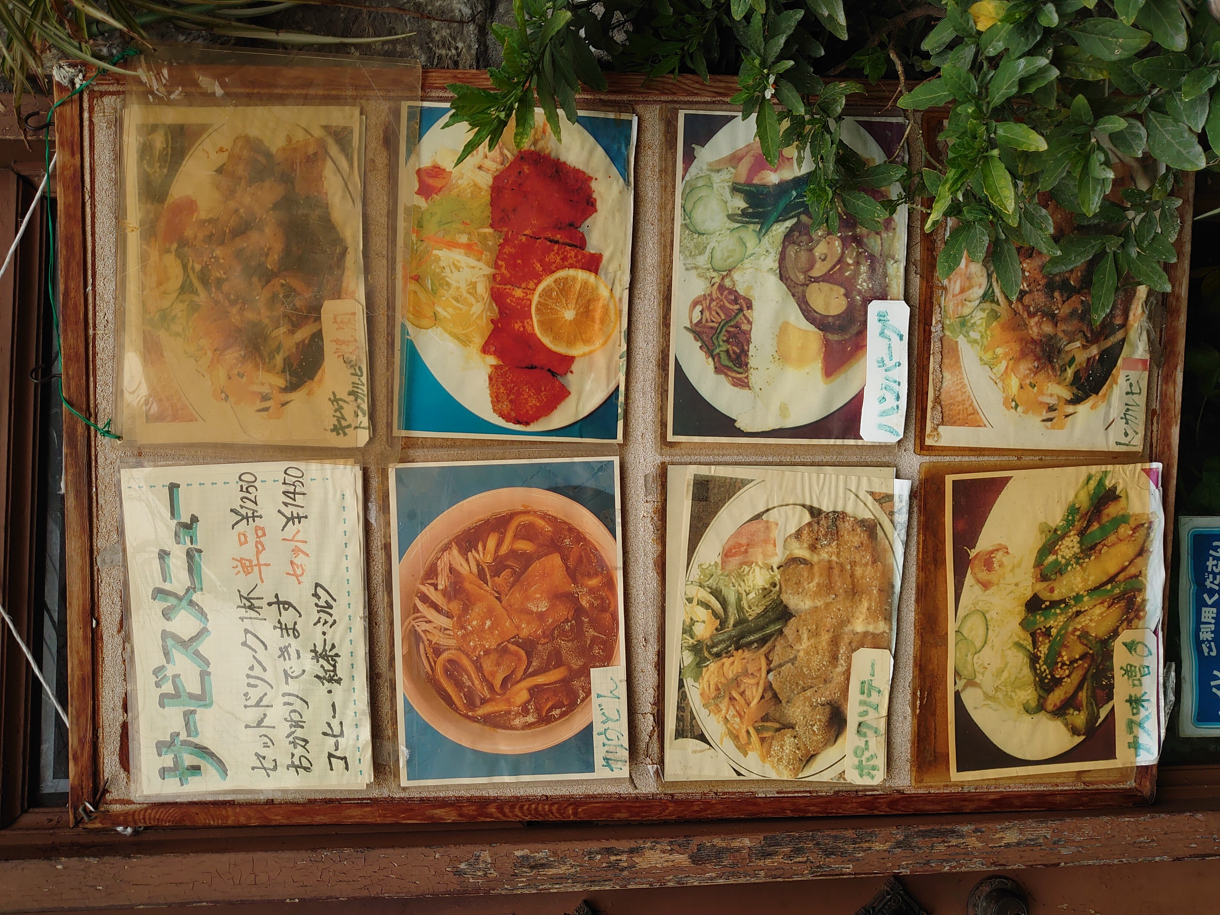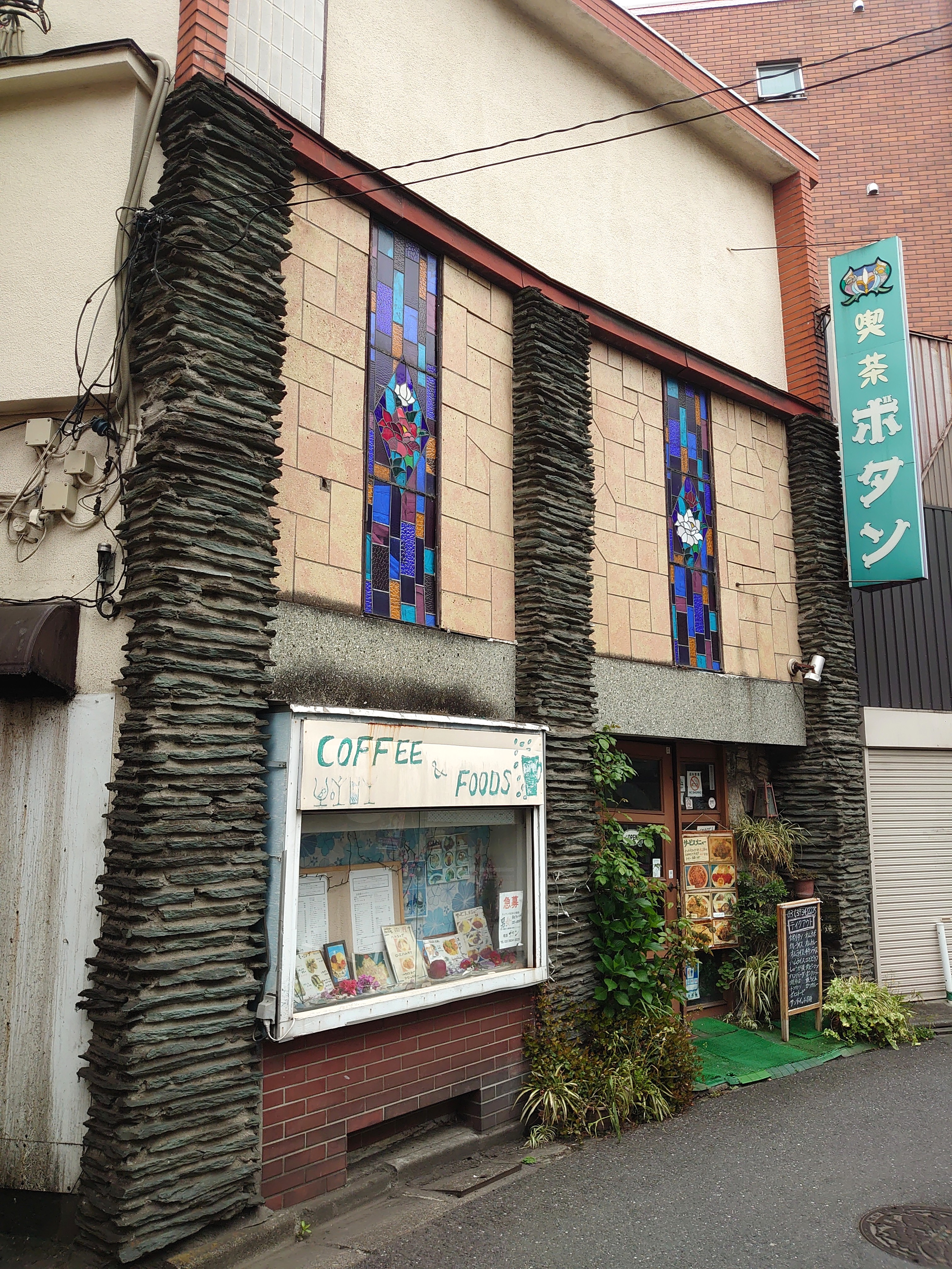 喫茶ボタン 2025年05月04日 喫茶ボタン 東京練馬区北町2丁目39−2東武練馬駅からすぐ、旧川越街道への脇道にある喫茶店。外観を見てすぐわかる昭和からのキャリア。ゴージャスな雰囲気だ。ステンドグラスもいいし、特に石の柱の部分は抜群だ。ぼくの一番お気に入りは、ショーウィンドー上部の手書きの文字やイラスト。シャンデリアと折り鶴店を出て歩いていると「練馬 アニメ発祥の地」のサリーちゃんの看板が。よきタバコ屋。ええっ。訪問診療の看板の絵が巨大母船UFO。この女性はプレアデス星人あるいはアンドロメダやシリウス? 「◆純喫茶【東京都】」カテゴリの最新記事 < 前の記事次の記事 >