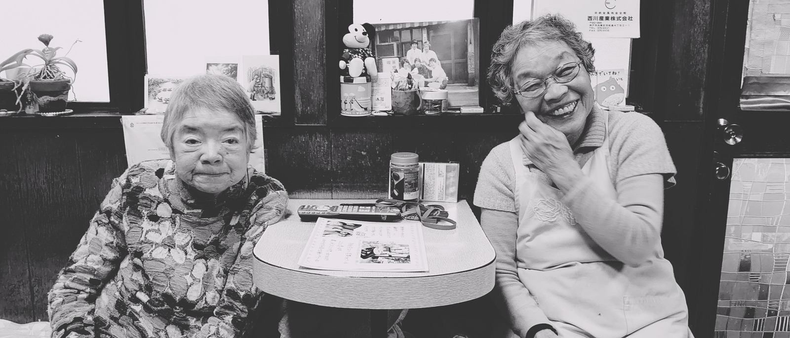 父の鉄工所跡地を思いつきで喫茶店にしたお母さんの谷岡なみさんと当時二十歳の朗子さん。お母さんが体調を悪くしてからは四人姉妹で切り盛りしている。
