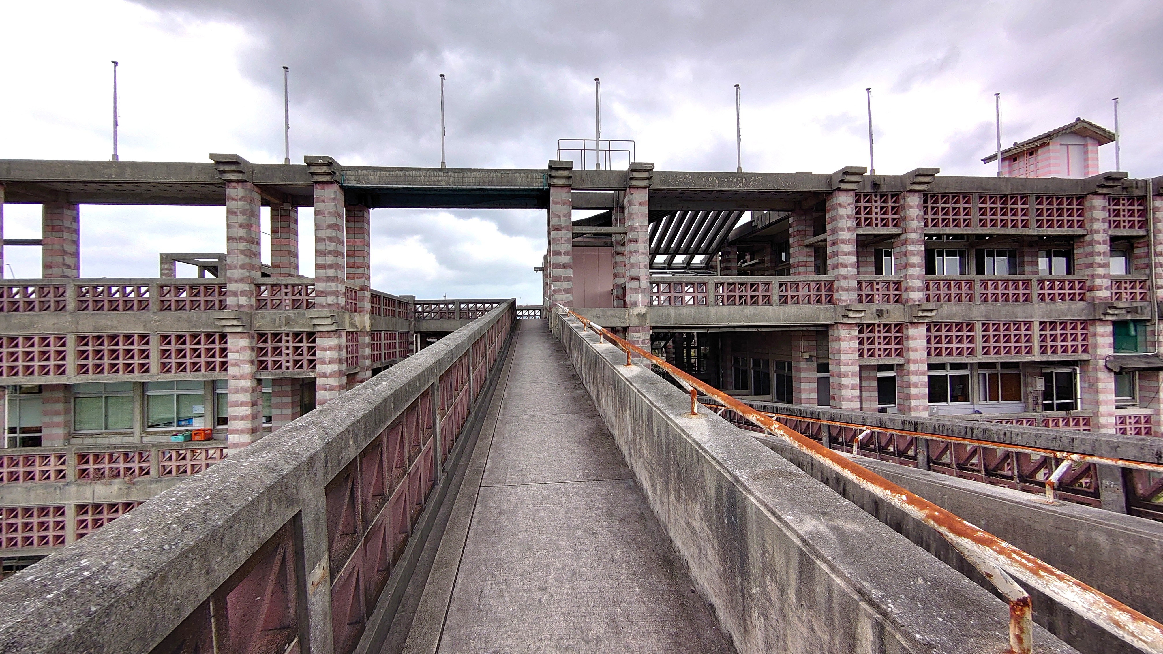 名護市役所は遺跡感に加え、屋外の空間がとても広く、ぐるっと散策可能。