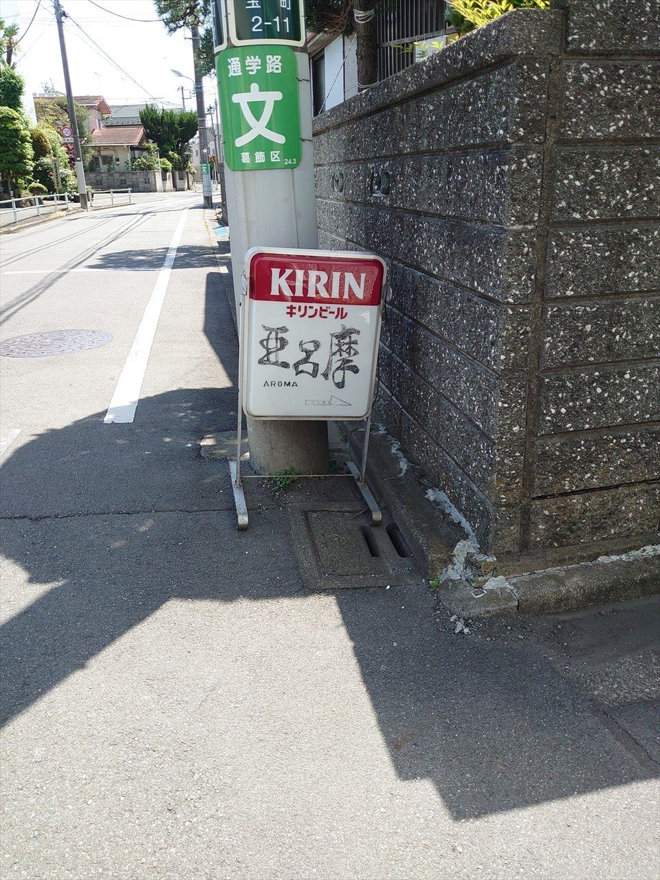 亜呂摩の看板が脇道へいざないます