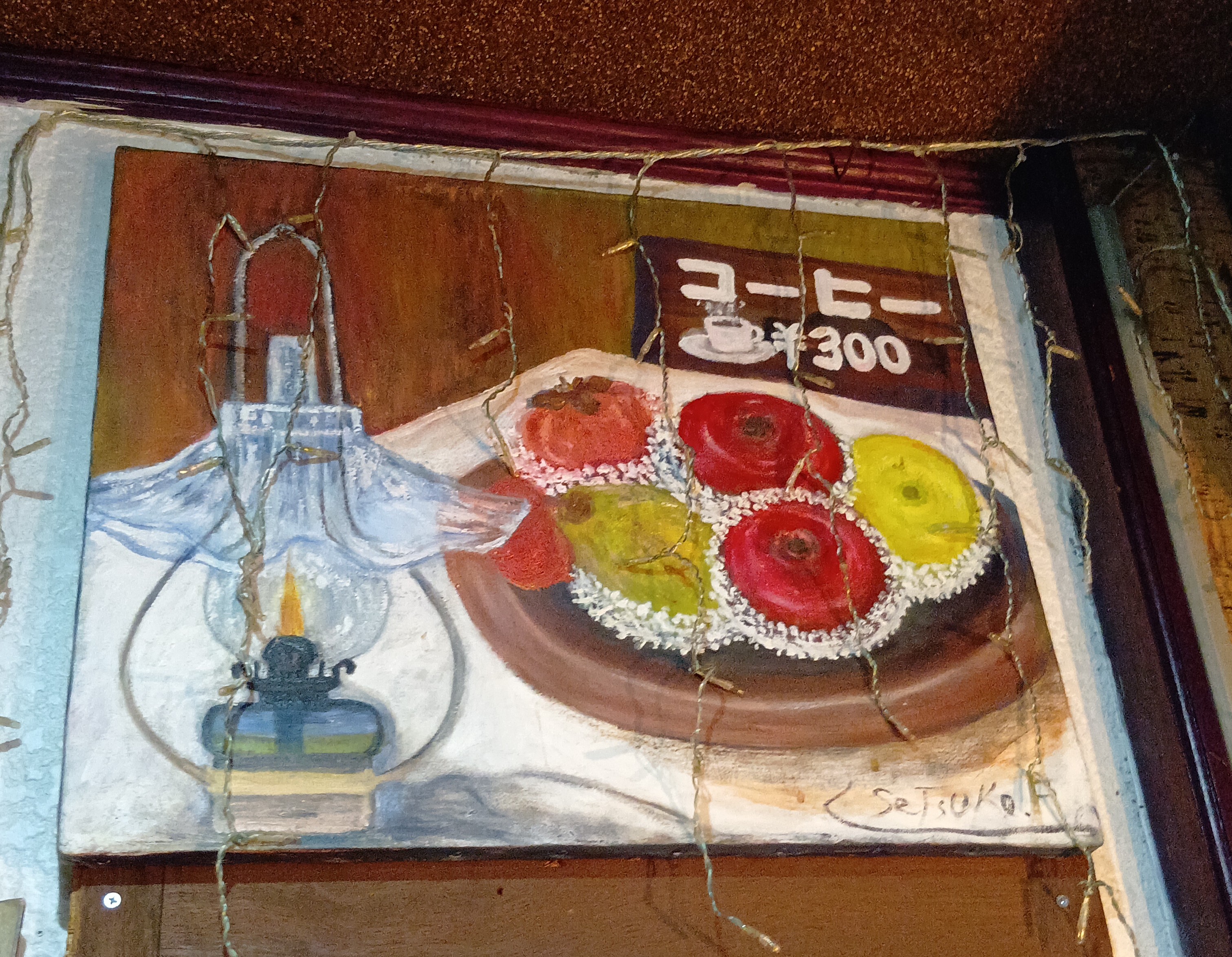 店内に飾られた多数の油絵は、すべてせっちゃんの手によるもの。