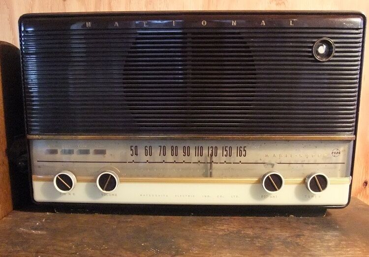 ナショナルの真空管ラジオくん ◆オーディオ、ラジカセ、BCL X Facebook LINE Pinterest コピー 2012.04.13 部屋にはとてつもなく古いラジオがあり、音がやわらかくて、昔から好きだったのだが、なんせでかいのである。 真空管があったまるまで1分程度かかり、準備ができると「オッケー」って感じで右上の透明な○が緑色に灯る(マジックアイ)。 しかしチューニングのための糸の張りが悪く、選局は本体の裏ぶたを外し、メカ側からまわして合わせていた。 先日の部屋整理にて、別の家に旅立ちました。