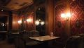店内の壁には絨毯のような布が一面に張られており、シャンデリアが灯り、奥の壁の大きなブラックミラーに店内が映り込む。