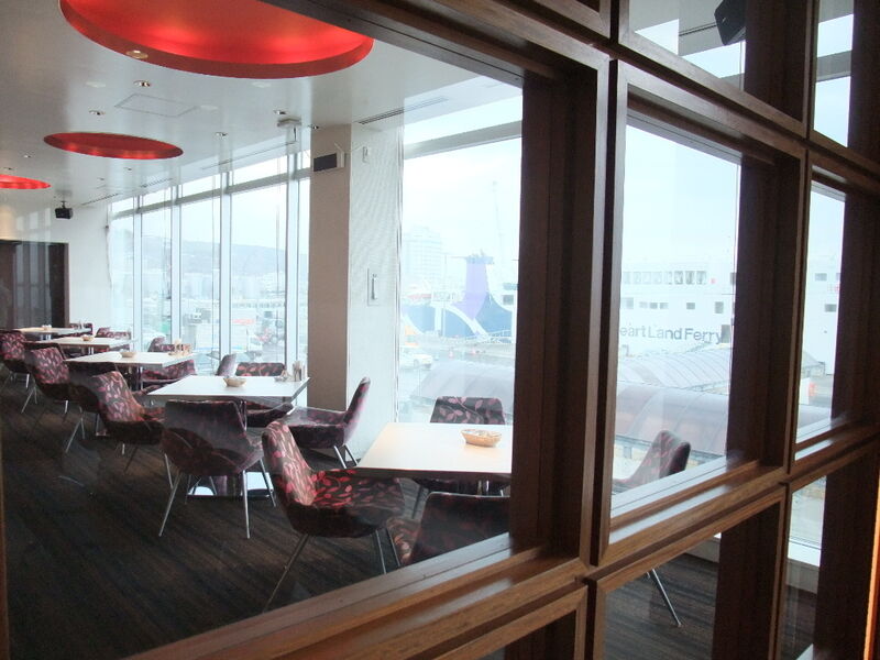 オフシーズンの離島へ ◆駅舎 X Facebook LINE Pinterest コピー 2011.04.08 北欧系デザインのフェリーターミナルのカフェ 空港なみにきれい。 椅子はOliver社製でした。 ロシア行きはこっち そして到着。 海岸・・・・ではなくふつうの草原の夕焼け