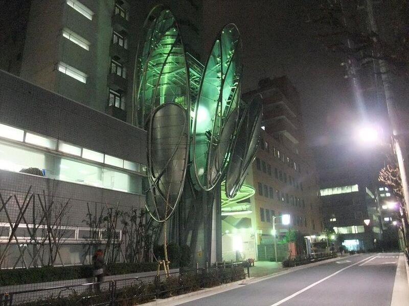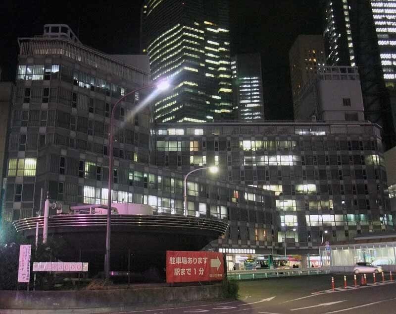 地下鉄の入り口をちょっと迷いながら探していると、夜道にこんなSFチックな建物が。