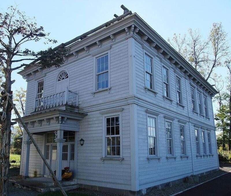 旧鷲田農場事務所/深川市音江町 ◆建造物【滝川深川歌志内赤平】 X Facebook LINE Pinterest コピー 2010.12.23 旧鷲田農場事務所 深川市音江町2丁目11番38号 掲載するの忘れてました。 先月初旬に深川市音江町で立ち寄りました。 留萌市←→深川が鉄道で結ばれた1910年頃に建てられた古い洋風の事務所(深川市指定文化財。平成10年頃にリフォームされてます)。 屋根のロウソクオブジェ気になる 立派な軒蛇腹(屋根の軒下から階段状に施工される装飾)。 半円型のファンライト。