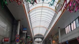 駅付近にたくさんの商店街があり、おばちゃんたちが自転車をこいで買物をしている。
