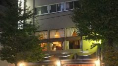夕焼けの円山温泉の煙突。
