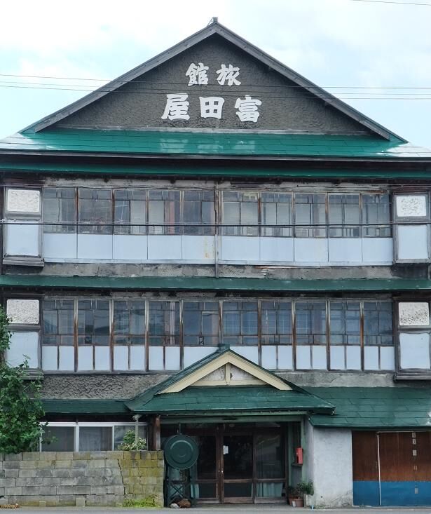 これは1933年に建てられた富田屋旅館で、旅館は30年ほど前にやめているけど壁面に書かれた屋号など、そのまんま。
