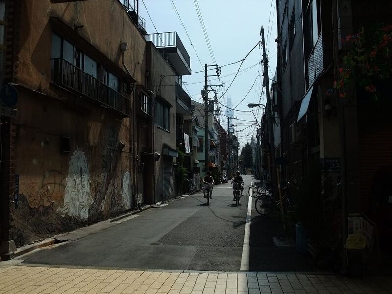 昭和な町なみと東京スカイツリーの遠景です