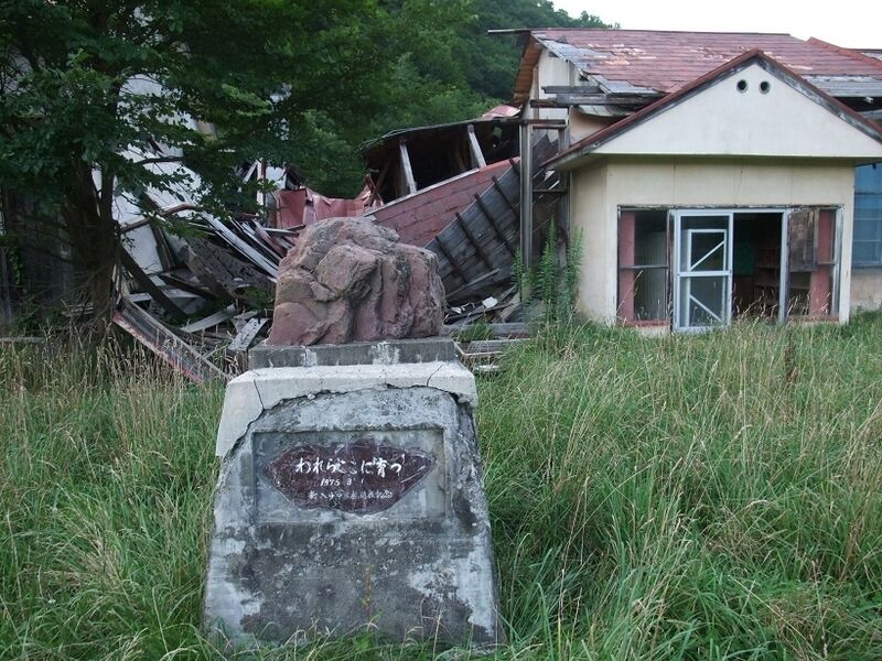 ニニウの終焉 6 『新入小中学校 外観』 ◆建造物【帯広・富良野美瑛方面】 X Facebook LINE Pinterest コピー 2010.08.17 1975年に廃校となったようですが、小さな村の学校閉鎖は実質的な廃村を意味したことでしょう。 廃村前、ここで暮らした人々のこの地への思い出、思い入れは強いと思います。 『われらここに育つ』 体育館 左手の部分の教室は崩壊 教員官舎でしょうか 閉校記念碑の場所から空を眺めました