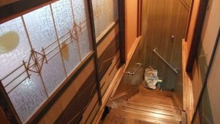 白いサッシの窓枠は新しいと思うが、シールでポップな雰囲気に。意外性が楽しい古民家。
