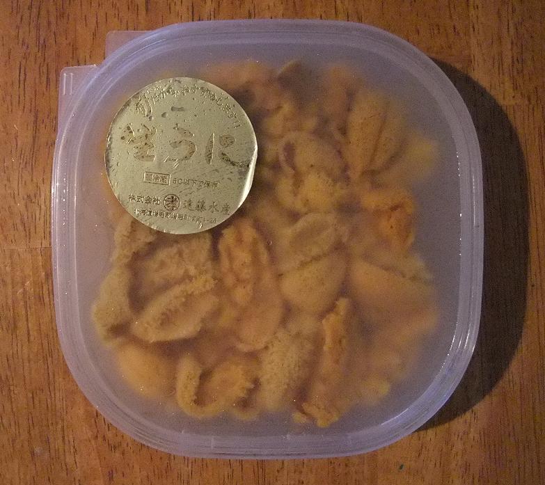 塩水に浸かってる生ウニ(ましけ産)。