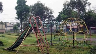 滑り台を兼ねた山。北海道の公園にはこういう山がよく設置されています。
