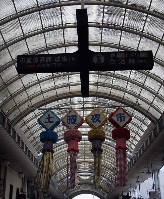 アーケードにあった設置物。電球が生きてるのは三粒だけだった。