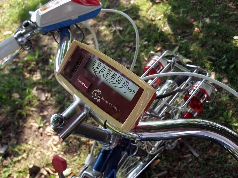 これは喫茶店めぐりのときについでに入った昭和な自転車屋さんから買った当時のスピードメーター。この大島さんにかなり似合っていると思いませんか? 正常に動いてます。