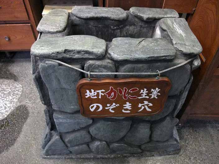 こちらは入り口レジ前。この池の中にも各種の蟹がいるのです。