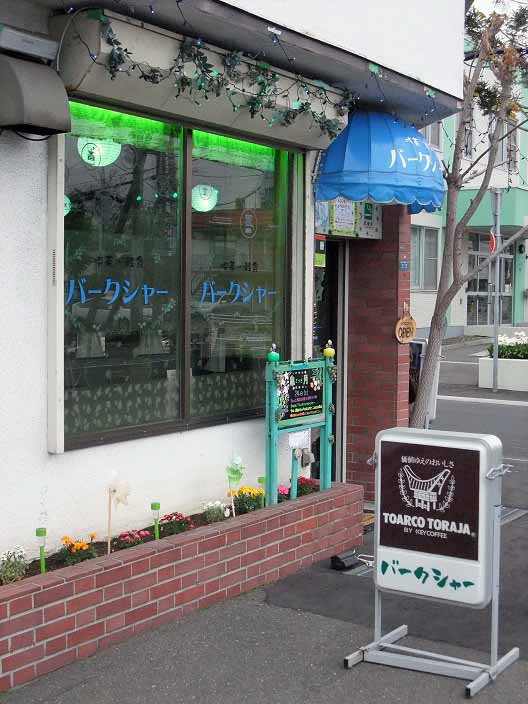 喫茶・軽食バークシャー/北海道札幌市 ◆純喫茶【札幌市】 X Facebook LINE Pinterest コピー 2014.06.27 喫茶・軽食 バークシャー 北海道札幌市白石区菊水7条2丁目3-5 たまたま通りがかって、うわー知らない喫茶だと思い、なにはともあれ入店。 マスターはバークシャーの三代目店主らしいです。 ところでこの店、マスターが好きな色とのことで、店内は緑色のグッズだらけ。 不思議な感覚になりました。