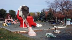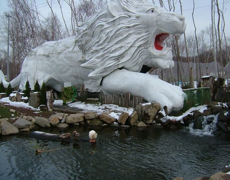ここには苗穂・豊平川東橋たもとのパチンコ屋の屋上に設置されていた巨大な白いライオンが移設されていて、動物園のゲートになっているのです。