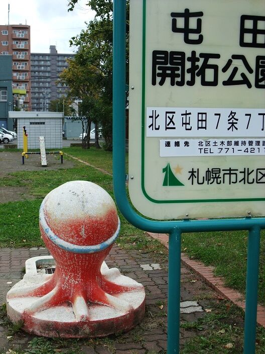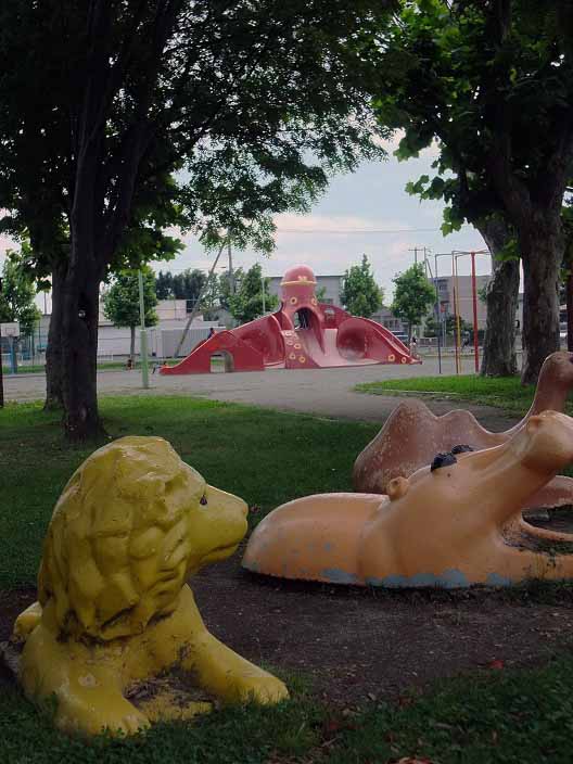 若草公園(タコ公園)/北海道江別市 ◆公園遊具 X Facebook LINE Pinterest コピー 2013.11.08 若草公園 北海道江別市野幌6 北海道のタコすべり台は40~50あります。 まだ半分くらいしか行ってないけど、ここは札幌からも近い江別市。 かなり造形が凝った大きなタコどんと、ライオン、カバ、ラクダが暮らす公園です。 昭和46年から。