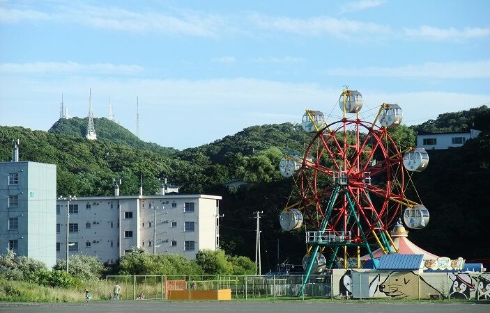 水族館の横には公務員宿舎や道営団地。