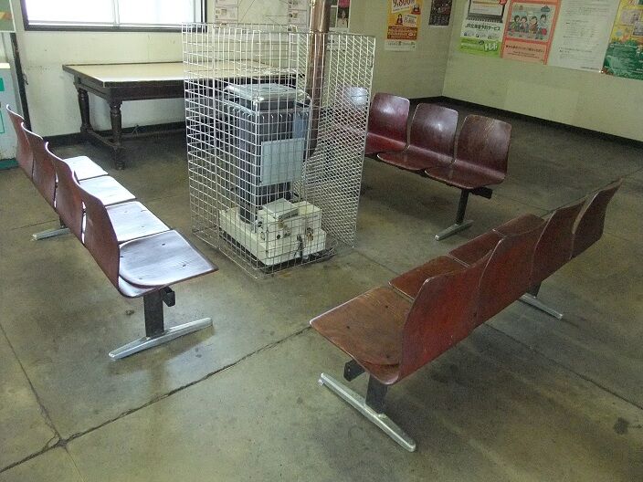 待合室には大きなストーブを囲んで木製のベンチチェア。いろんな人のお尻で磨かれて、いい感じになっています。