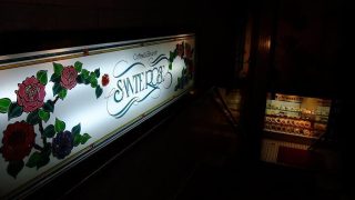 鴻臚館 (こうろかん)という格式高い名称の喫茶店は、渋くかっこいいマスターと、絵になる家具やインテリアで、凝ったつくりだった。店主の個性がつくりあげた空間。特に、ドアを開ける動作で動くギミックの大きな人形には目を奪われる。