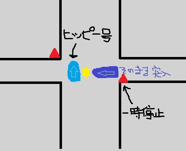 こっちは車の多い優先道路を走っていたところ、